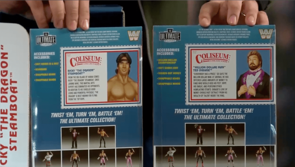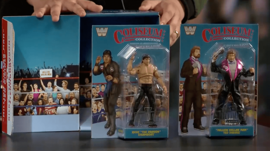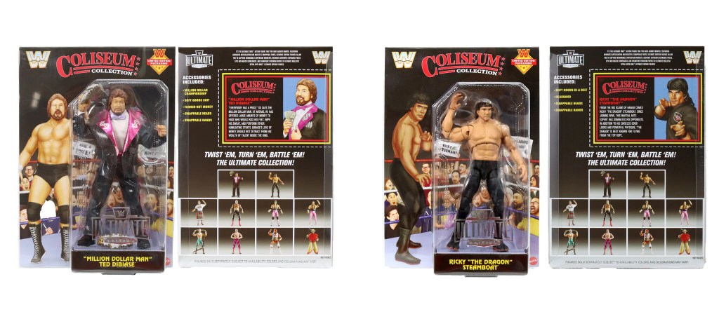 The next set of WWE Ultimate Edition Coliseum Collection figures will be Ricky “The Dragon” Steamboat and “The Million Dollar Man” Ted DiBiase. They’ll also have Black card chase variants randomly packed into orders. They’ll go up for sale this fall.