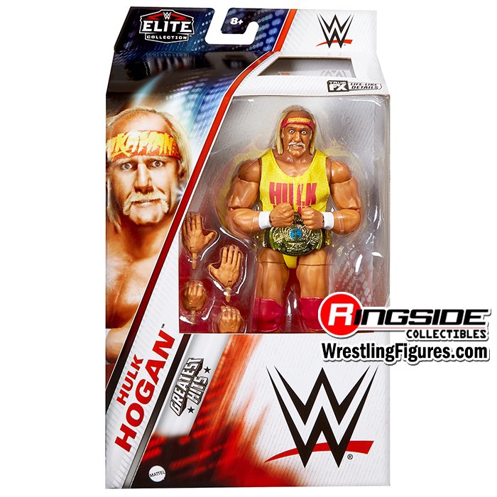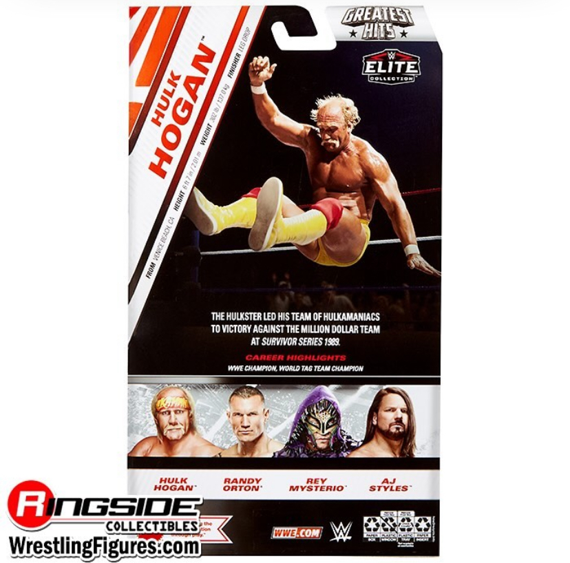 We finally received a look at the WWE Elite Greatest Hits wave featuring Rey Mysterio (from the WrestleMania 2-pack with Samoa Joe), Hulk Hogan (from the Survivor Series Elite wave) and tweaked versions of Randy Orton and AJ Styles.