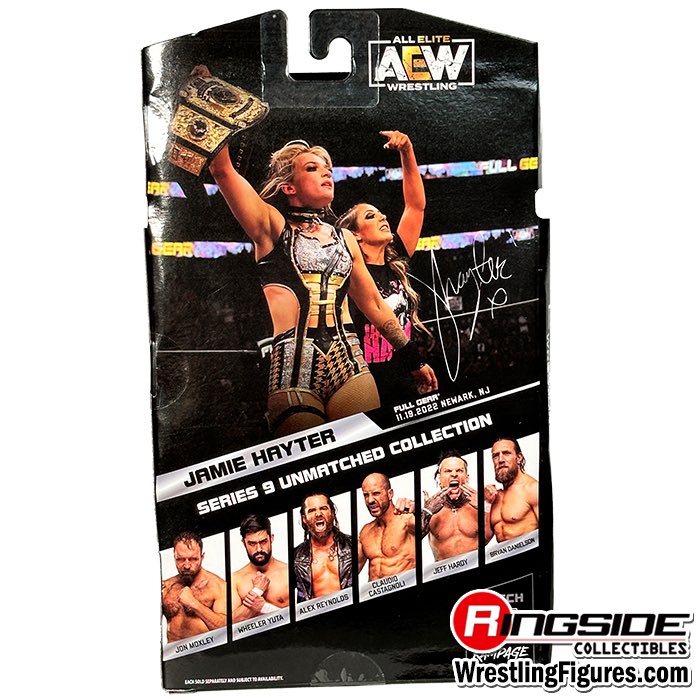 The includes Combat Club’s Claudio Castagnoli ($25.99), Jon Moxley ($25.99), Bryan Danielson ($25.99), Wheeler Yuta ($23.99); Jamie Hayter ($24.99); and Jeff Hardy ($23.99). Hardy is the only one on back order until late June.