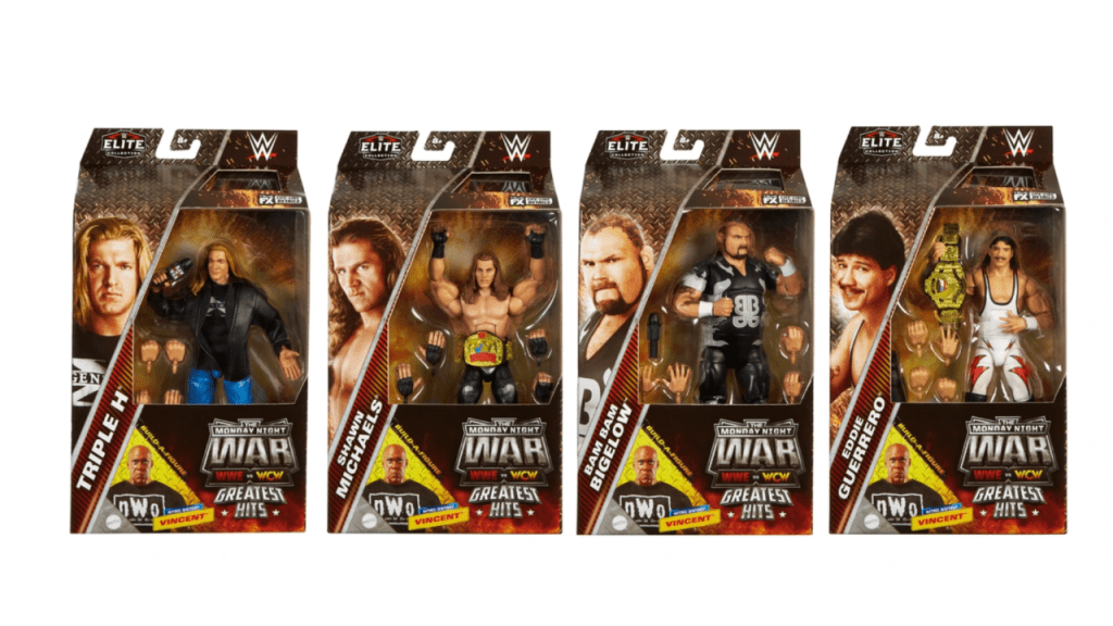 In-package and pack out images of the upcoming WWE Elite Monday Night War Greatest Hits line appeared on the Smyths Toys website today.