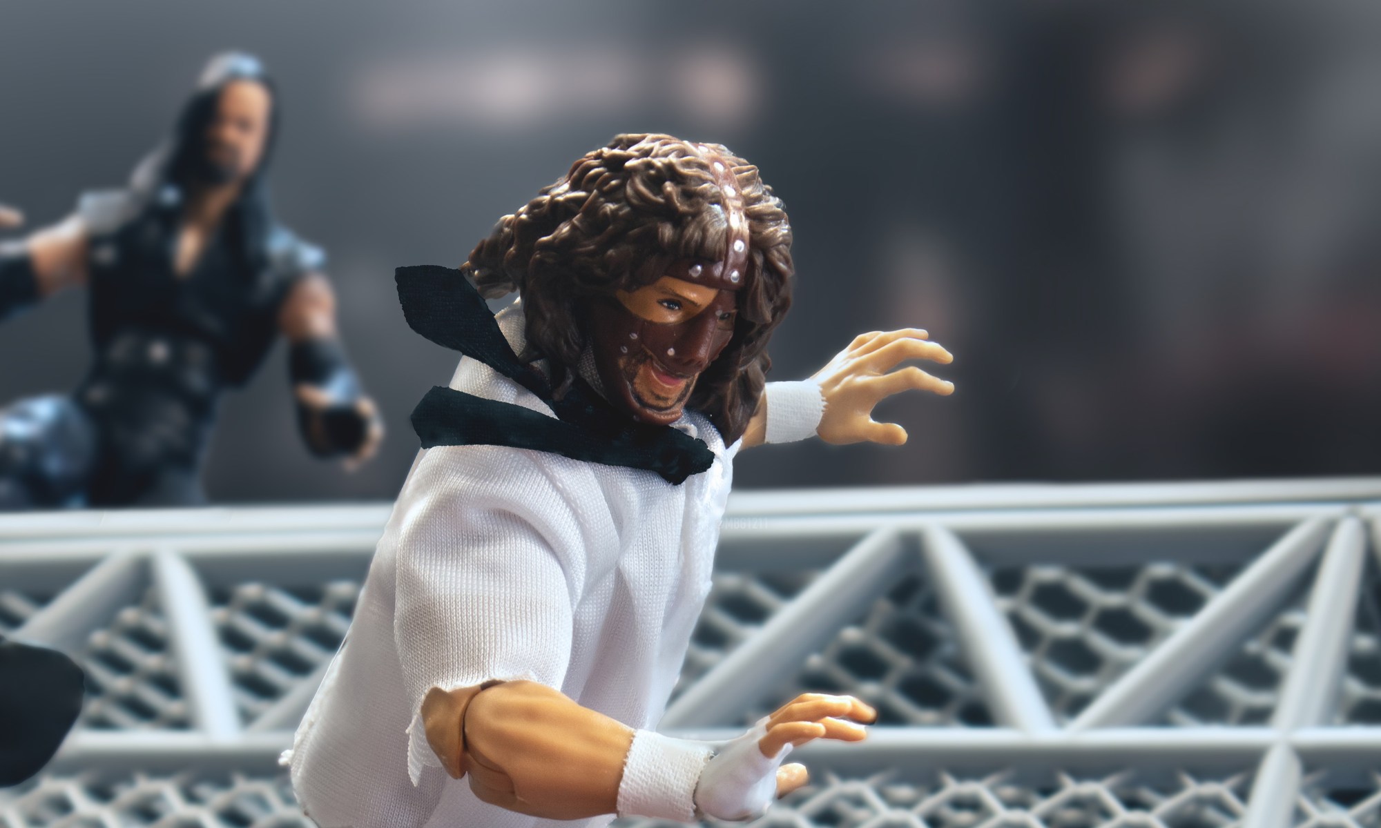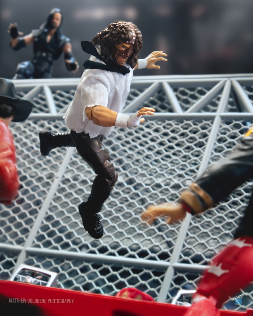 Matthew Goldberg (MBG1211) recreated the moment when the Undertaker tossed Mankind off the top of the cell with a hard landing coming to the announcers’ table.