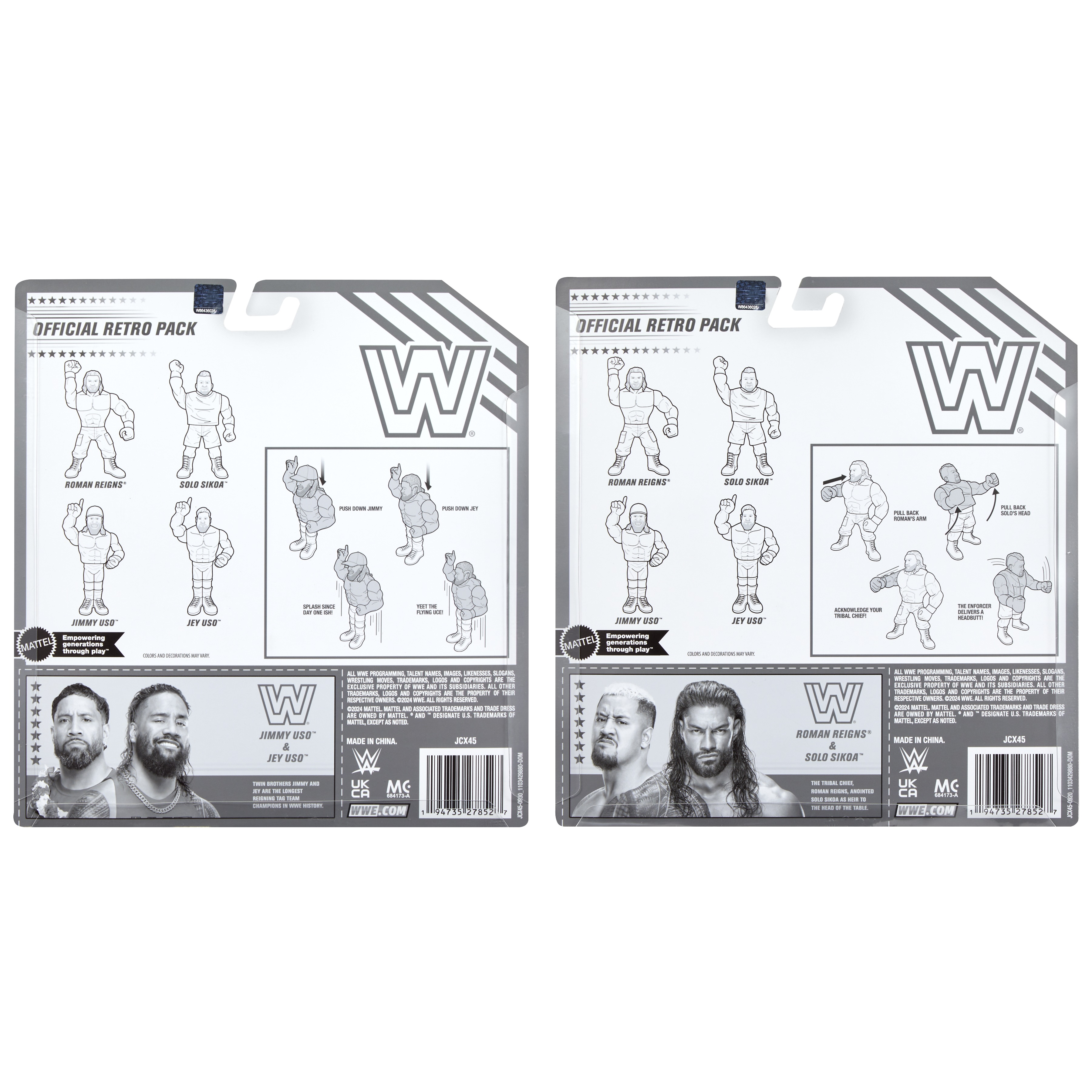 The full bundle retails for $54.99 with a late March 2025 expected shipping date. Or you can snag 2-packs of the Usos or Roman and Solo for $27.99 each.