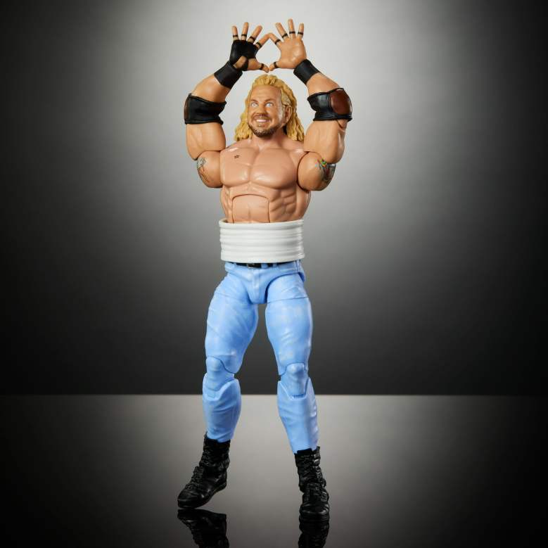 The first Elite figure of the Sandman goes hard, with ECW shirt, barbed wire and a beer can. The head sculpt is passable, but the skull sweatpants attire is pretty awesome (and the USA chase is a nice alternative). But I wish the sculpt had a cigarette dangling out of his mouth and blood dripping from his forehead from smashing that beer on his dome. Not something you’ll get at mass retail.
