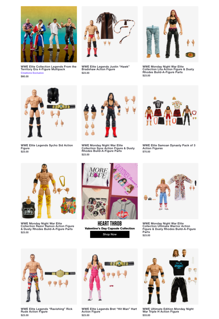 Recent WWE store exclusives are now available via Mattel Creations. Several exclusives that hit big box retailers Walmart and Target are now up on the site.