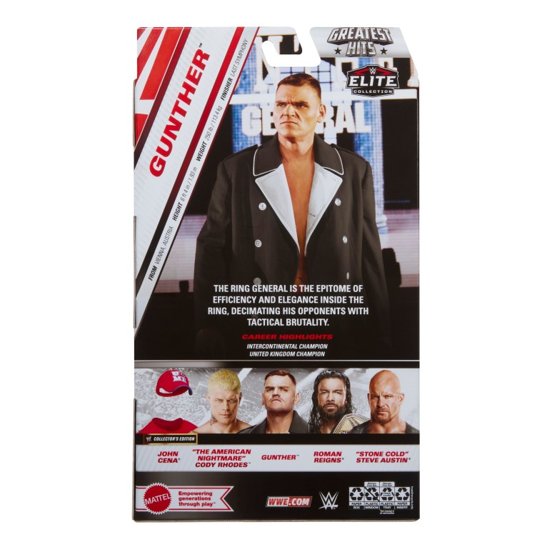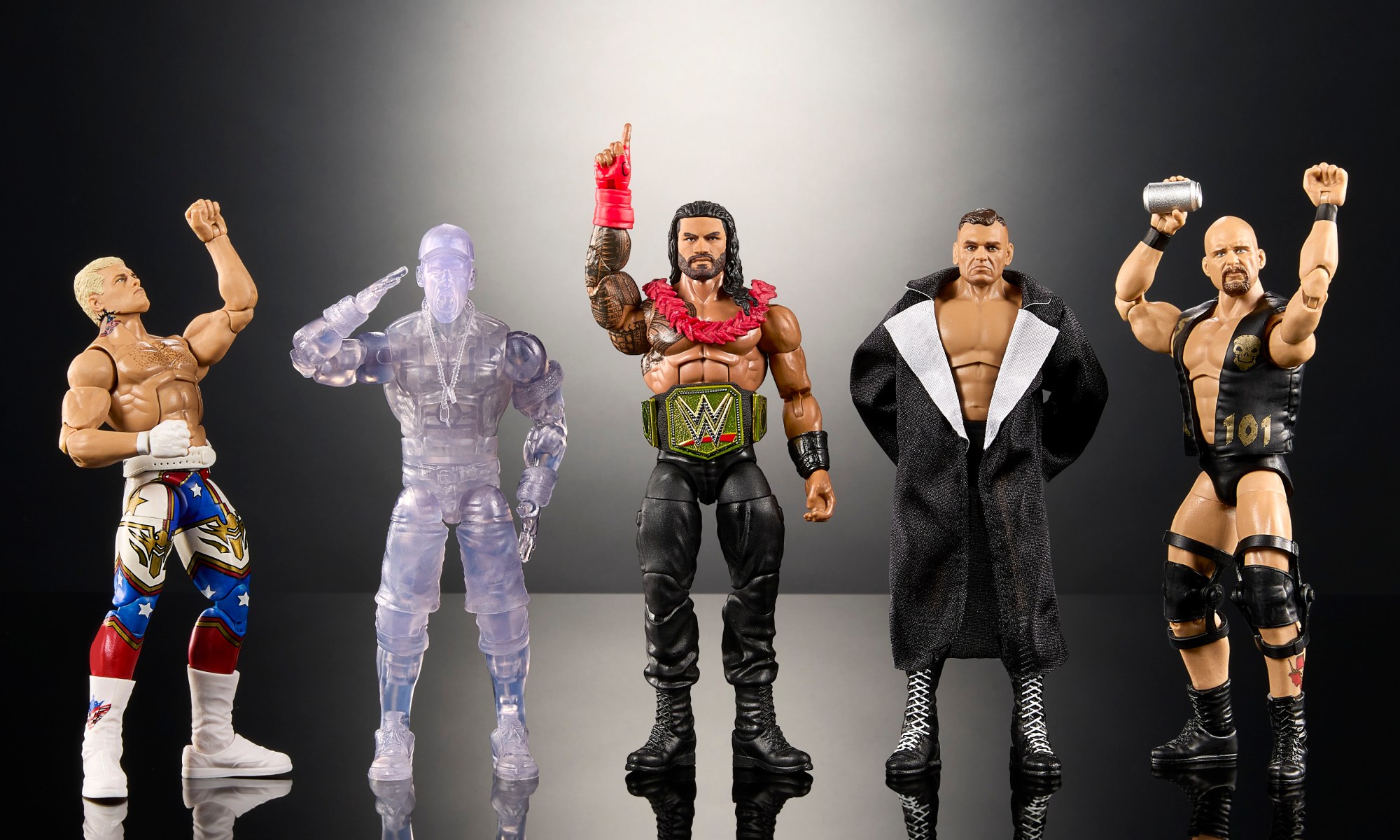 The next WWE Greatest Hits Elite wave will be packed with heavy hitters: Cody Rhodes, a you-can’t-see-me John Cena, Roman Reigns, Gunther and “Stone Cold” Steve Austin.