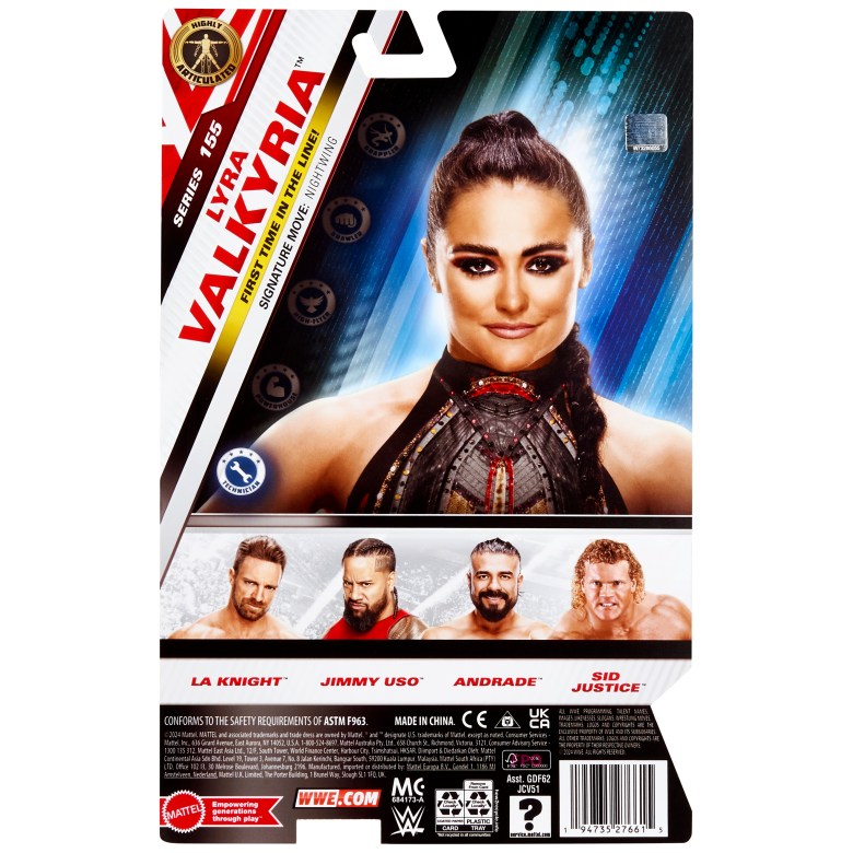 Mattel dropped images of the upcoming WWE Main Event 155 set on Friday. ME155 features the first figure of Lyra Valkyria, along with a chase, the WWE return figure of Andrade, and updated figures of Sid Justice, LA Knight and Jimmy Uso.