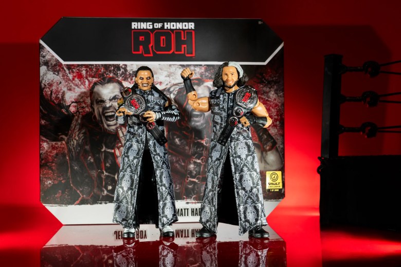 They Hardy Boyz may be on WWE NXT next Tuesday, but they’ll be getting an AEW Ring of Honor 2-pack release on the Jazwares Vault a day later.