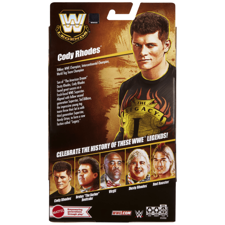 The set features the “Red Rooster” Terry Taylor, Cody Rhodes (with chase), Dusty Rhodes, Virgil and Brutus “The Barber” Beefcake.