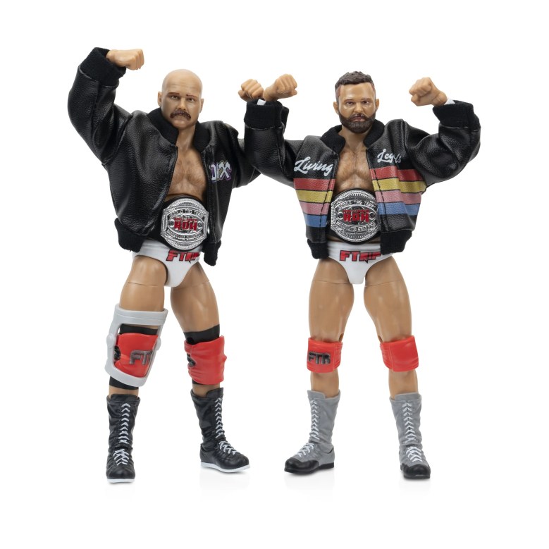 The 1 of 3,000 set comes in retro-style packaging, featuring Dax and Cash from their feud with the Briscoe Brothers. Included in the set are the Ring of Honor Tag Team Championships and “Living Legends” entrance jackets.
