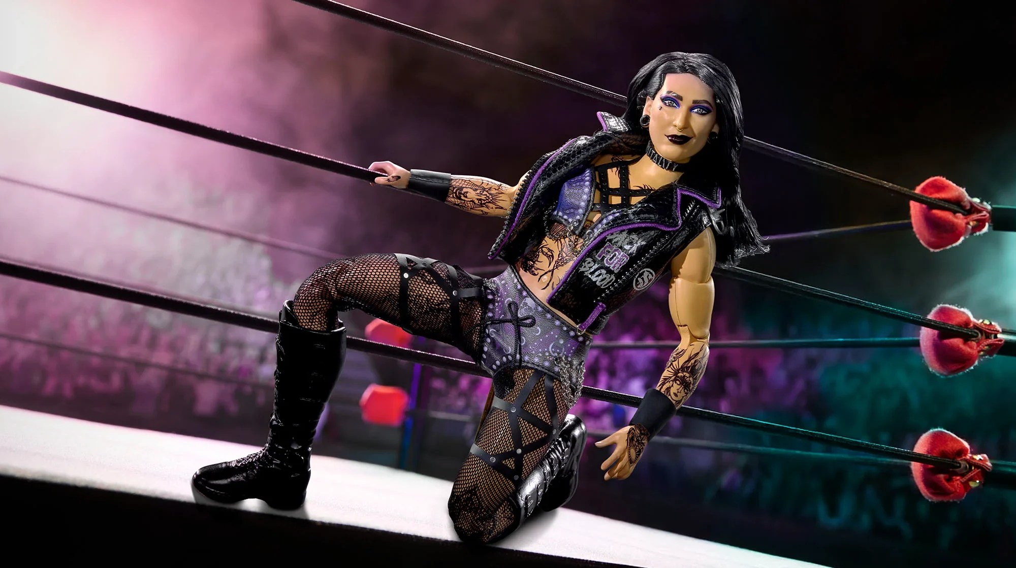 Rhea Ripley, a multi-world champion, is being honored with our first WWE Collectors doll. This made-to-order ode to the Eradicator features a unique doll sculpt to match her athletic build, and wears her entrance jacket and ring attire from her WWE SummerSlam® 2024 bout. She’s ready to rock opponents with The Riptide and hoist the included title in victory.