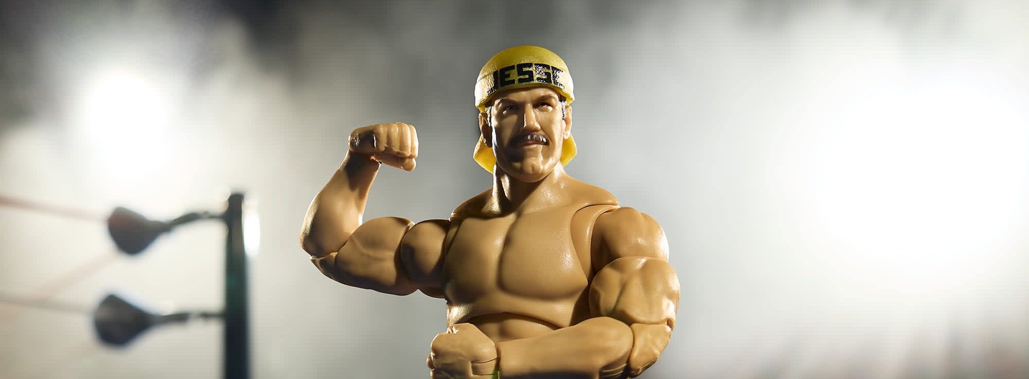 “The hottest thing in professional wrestling arrives as a WWE Ultimate Edition action figure – it’s Jesse “The Body” Ventura. He’s ready to flex as the unforgettable ringside commentator you loved at SummerSlam 1989 and on Saturday Night’s Main Event, or as the unmissable Hollywood star. Interchangeable heads make it easy to switch between his personas, and if anyone gets out of line, interchangeable hands give him the fingers to point them out, or the fists to rumble.”