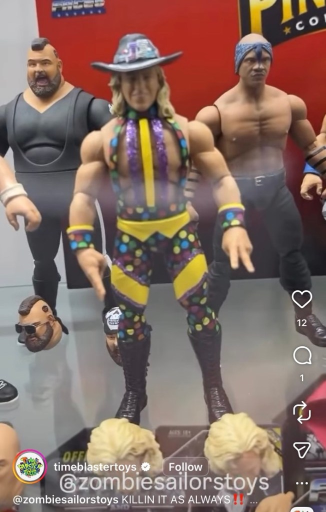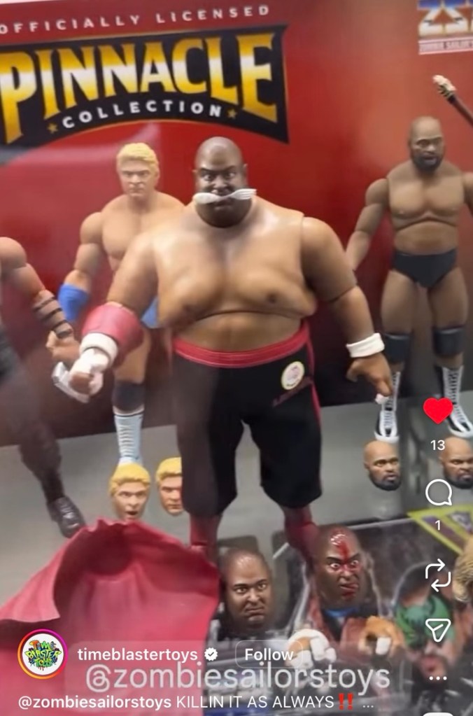 The Major Wrestling Figure Podcast shared the above photo from Zombie’s booth, showing prototypes of Dino Bravo, the One Man Gang, New Jack and Bad News Allen (Brown). Those first looks were in addition to Series 1, featuring King Kong Bundy, Jeff Jarrett, Abdullah The Butcher and Brian Pillman