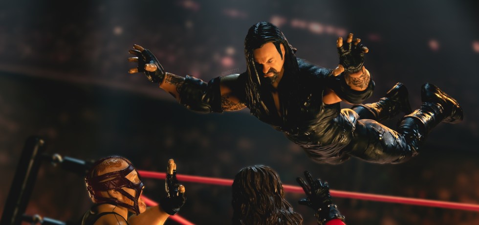 Undertaker Dives Over Flames onto Vader and Kane in Figure Photography